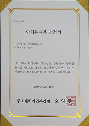 솔룸신소재, 중소벤처기업부 ‘2025 아기유니콘 육성사업’ 선정
